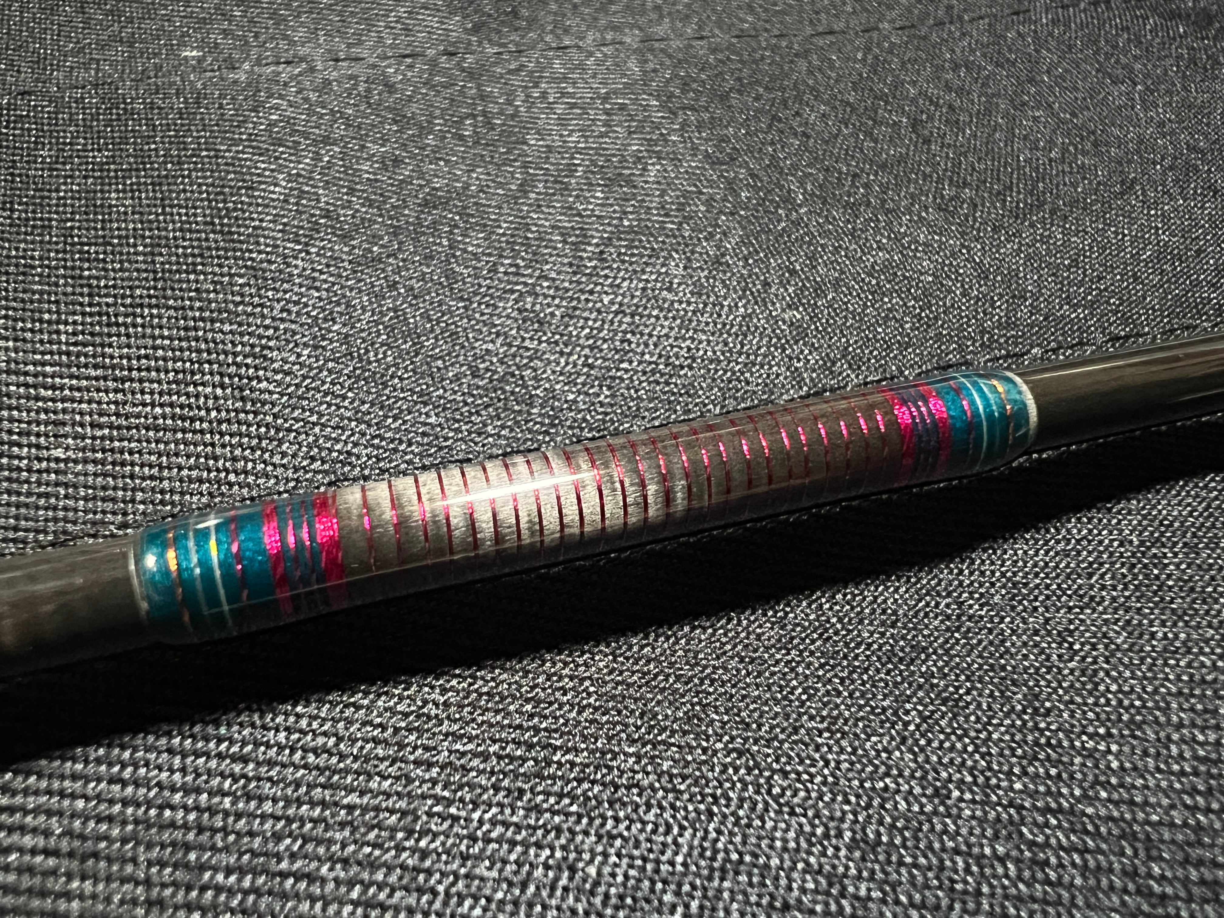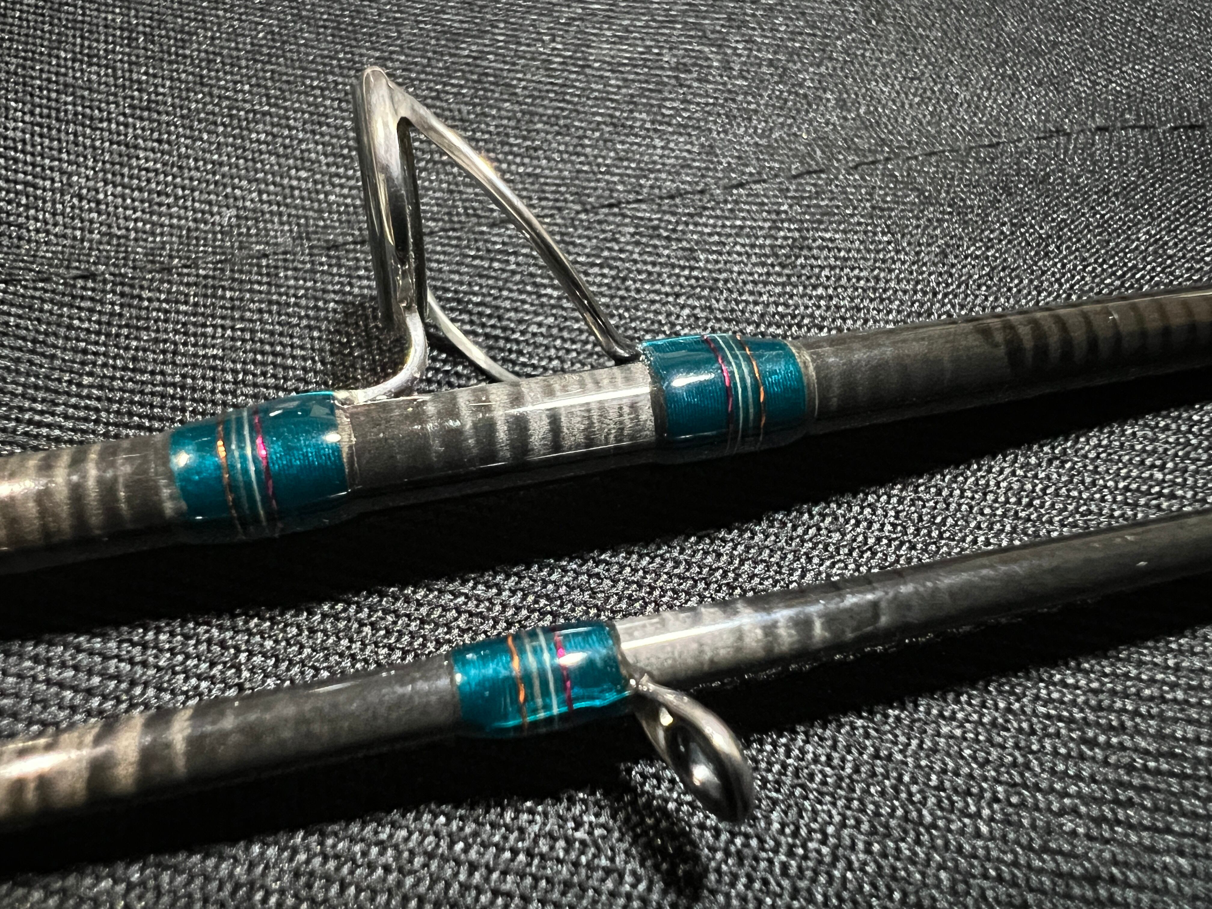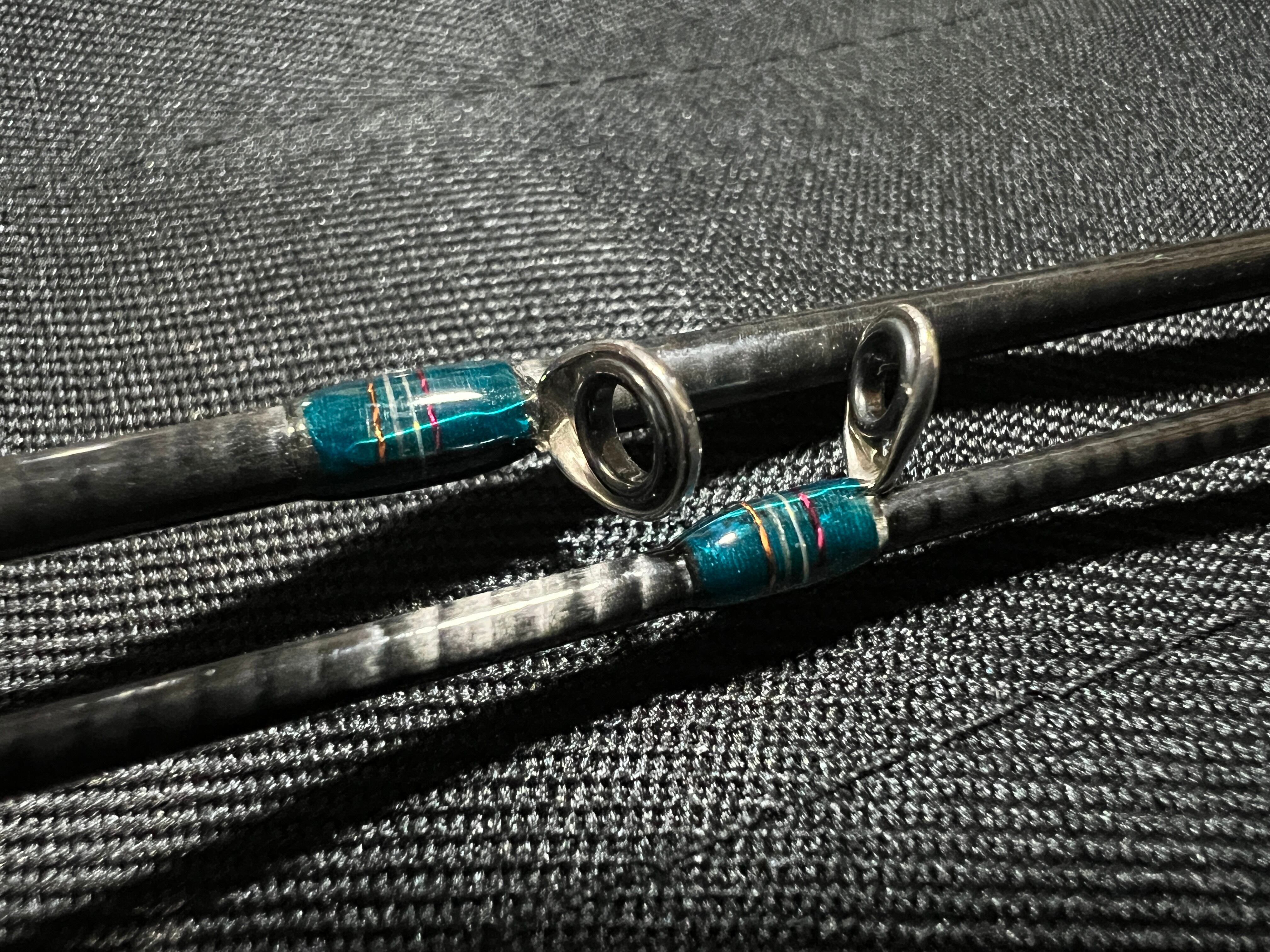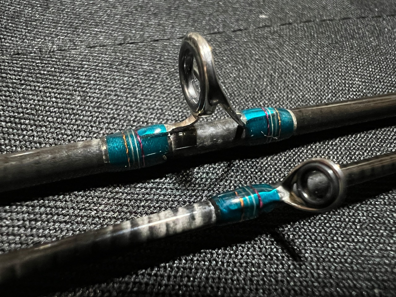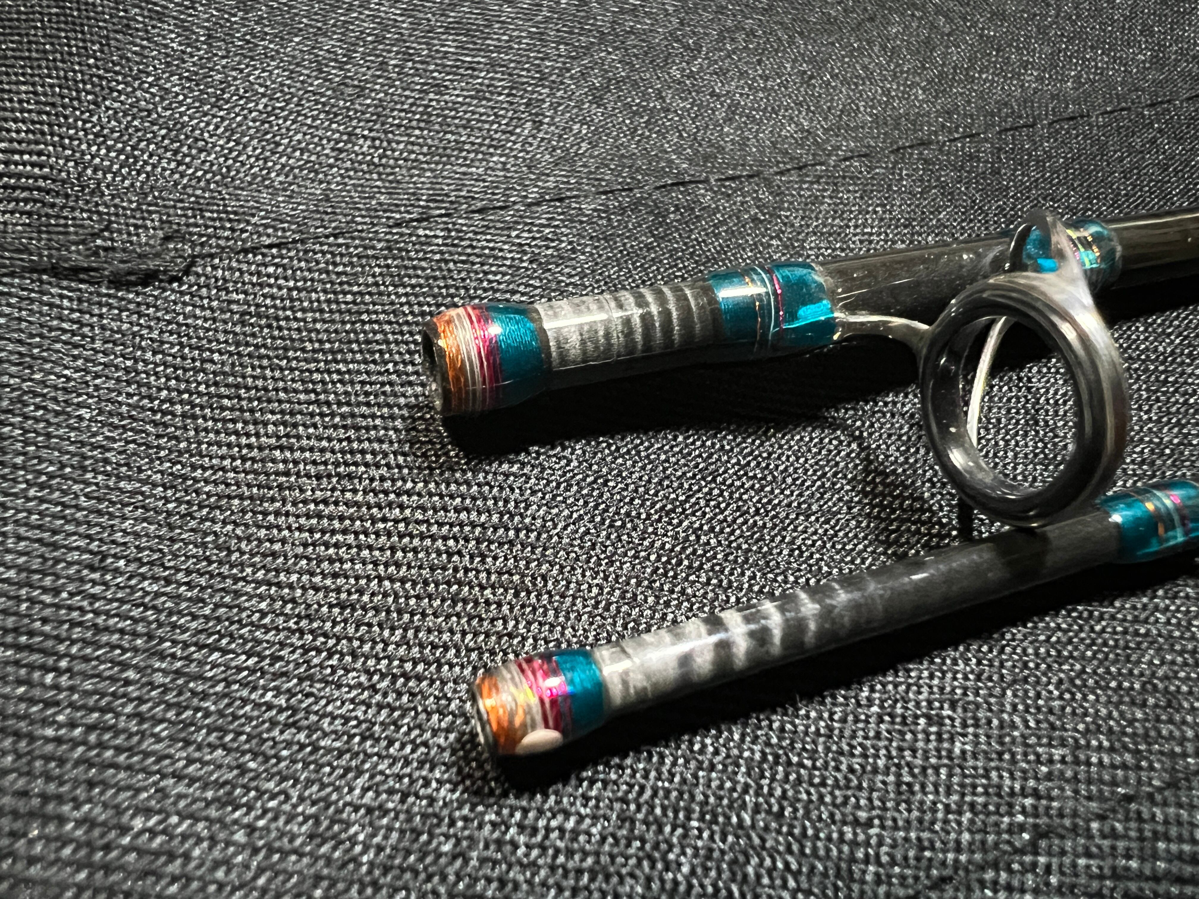 商品説明 : 昨シーズン自分用に制作したロッドです。オフシーズンで入れ替えの為出品します。10回前後使用。目立つ傷や汚れは見受けられません。デザインはハイエンド仕様ですが、ガイドはステンレスSiC仕様です。