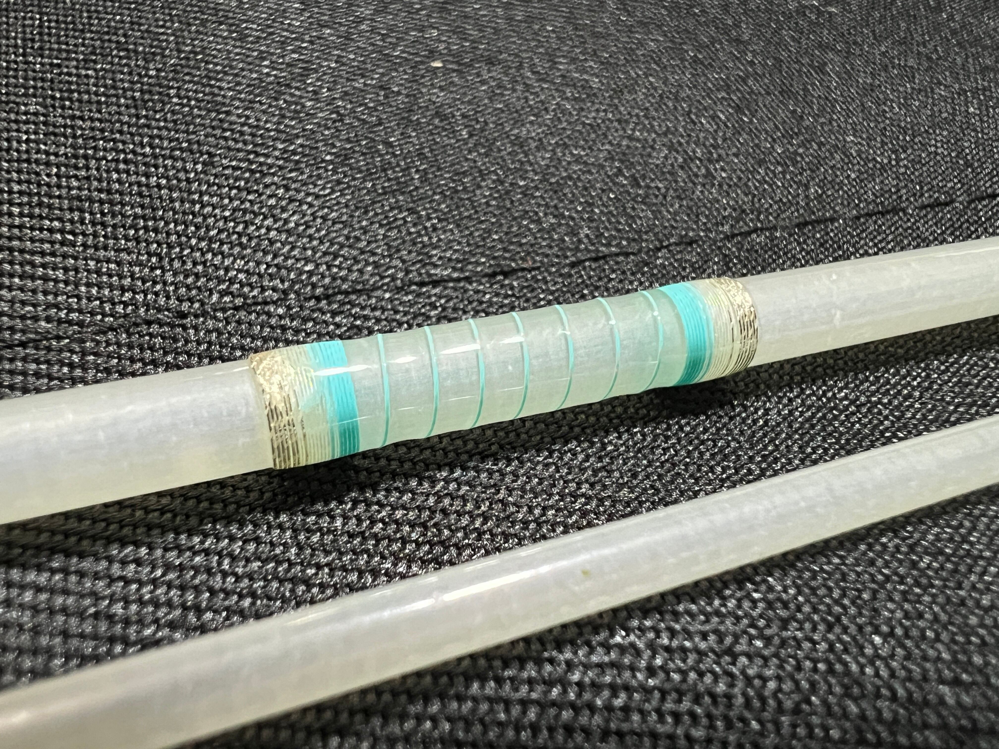 昨今主流になりつつあり、UDグラス(単一方向のグラス繊維)ロッドと比べると、『張り』のあるロッドです。